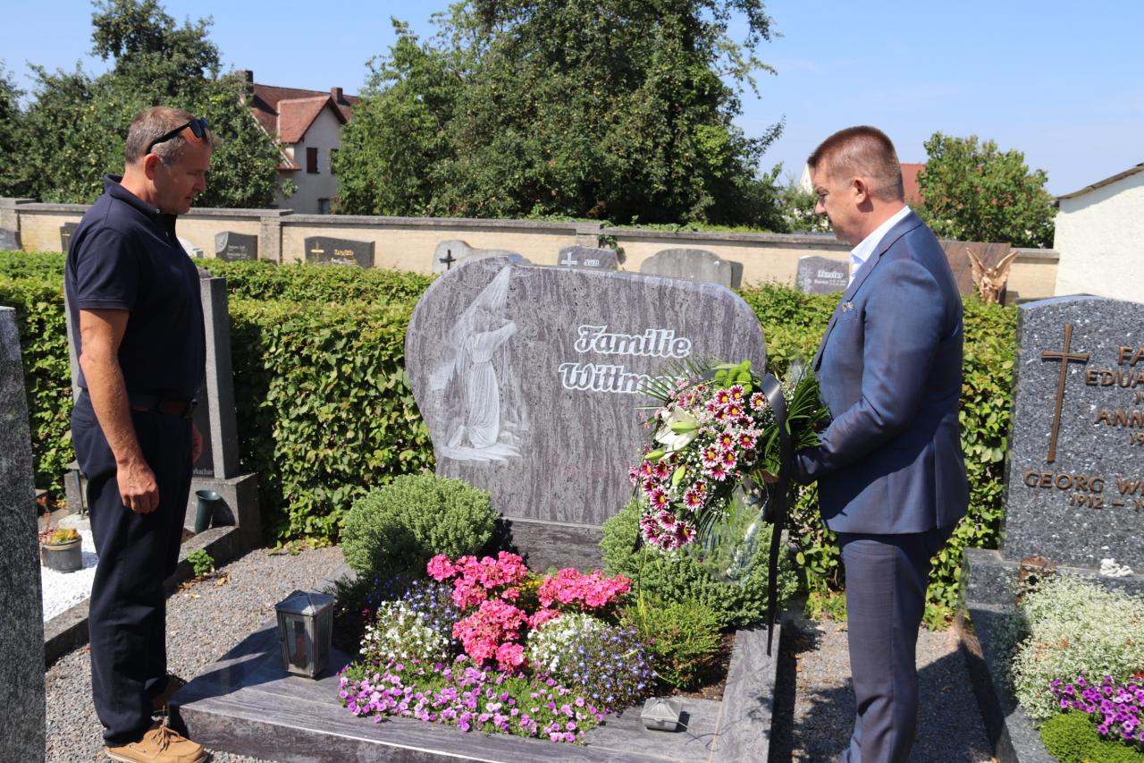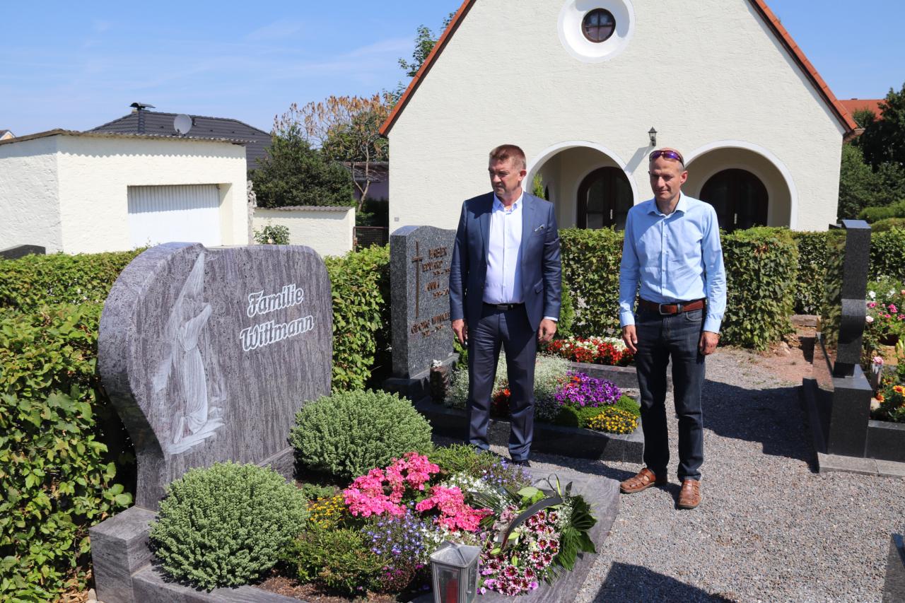 Společně s místostarostou Miroslavem Knotkem a tajemníkem úřadu Pavlem Jiráskem se nejprve zastavili na hřbitově v Leonbergu, kde položením kytice a tichou vzpomínkou uctili památku tajemníka burglengenfeldského úřadu Thomase Wittmanna, který zemřel náhle letos v zimě a na jehož pohřeb nebylo možné kvůli tehdejším opatřením přijet.