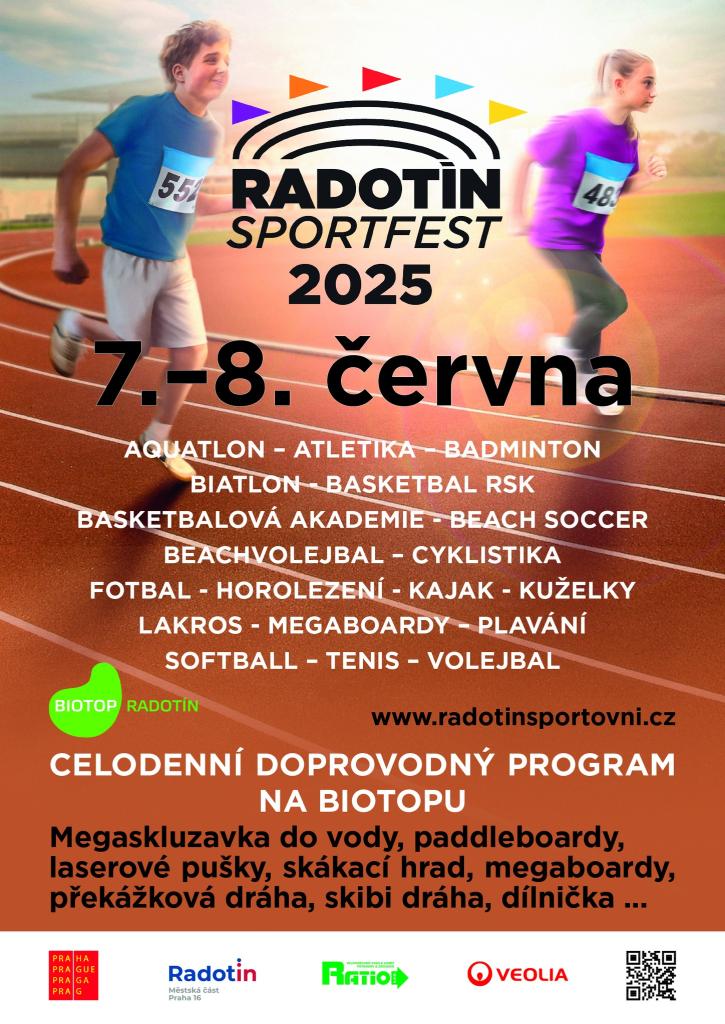V pražské městské části Radotín se v sobotu 7. a v neděli 8. června 2025 uskuteční třetí ročník akce Radotín Sportfest. Zájemci se stejně jako loni a předloni mohou zapojit do soutěží a závodů o medaile, na vlastní kůži si vyzkoušejí více než dvě desítky sportovních odvětví – mimo jiné lakros, volejbal, softbal, plážový fotbal, basketbal, biatlon, jízdu na kajaku nebo atletiku. Mnoho další zábavy a sportovních výzev čeká na účastníky přímo v areálu Biotopu Radotín.