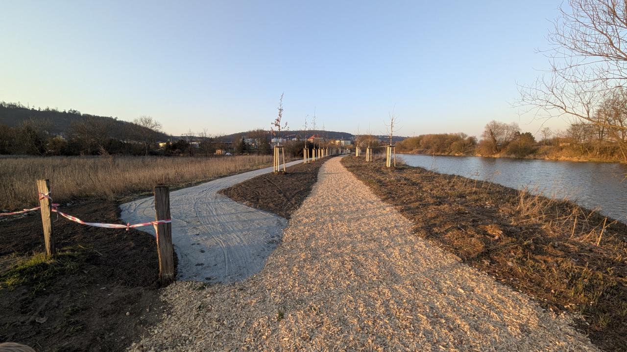 Nově upravená stezka podél Berounky nabízí dvě varianty povrchu: